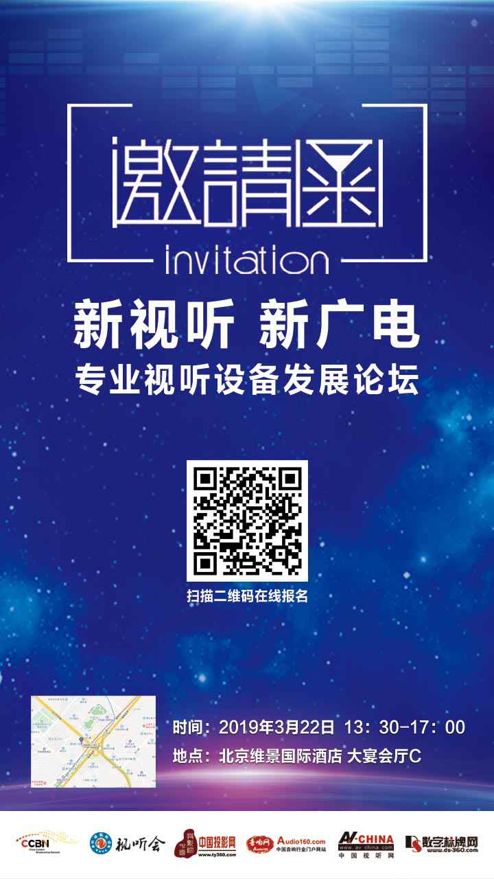 在此,誠(chéng)邀各位視聽(tīng)行業(yè)同仁蒞臨參加3月22日北京“新廣電·新視聽(tīng)”專業(yè)視聽(tīng)設(shè)備發(fā)展論壇,行業(yè)的發(fā)展離不開(kāi)你的支持,趕緊掃描邀請(qǐng)函上二維碼在線報(bào)名,期待與您在論壇現(xiàn)場(chǎng)見(jiàn)面,不見(jiàn)不散!