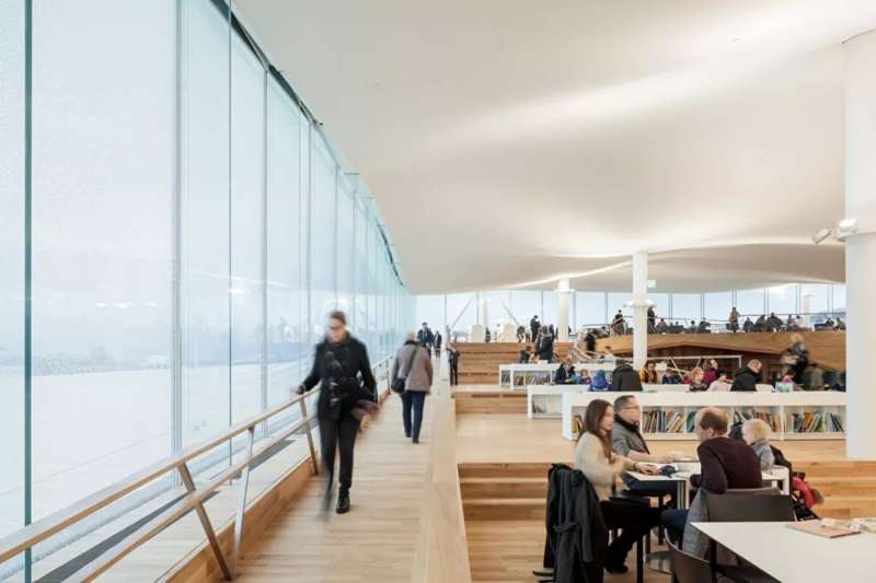 把公共廣場(chǎng)巧妙地融合進(jìn)圖書(shū)館的室內(nèi)空間。