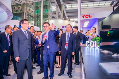 TCL集團(tuán)高級副總裁、TCL多媒體CEO王成陪同工信部領(lǐng)導(dǎo)參觀TCL展臺