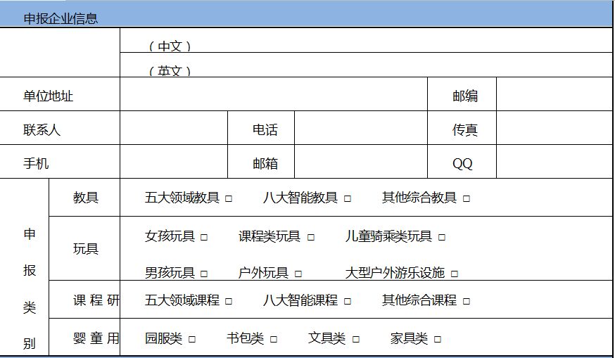 2019年幼教行業(yè)優(yōu)質(zhì)產(chǎn)品評選工作申報表