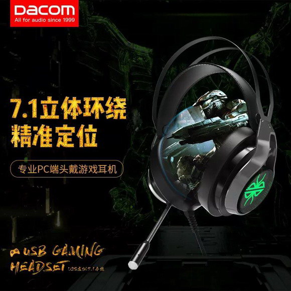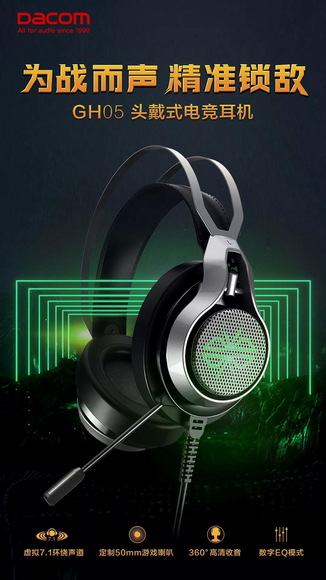 作為Dacom首次推出的GH05頭戴式電競(jìng)耳機(jī),GH05采用游戲耳機(jī)專用的7.1虛擬環(huán)繞聲道,外置獨(dú)立聲卡,通過(guò)7條音頻通道軌跡,放大你周邊位置聲源,技能提示音和游戲環(huán)境音盡收雙耳之中。