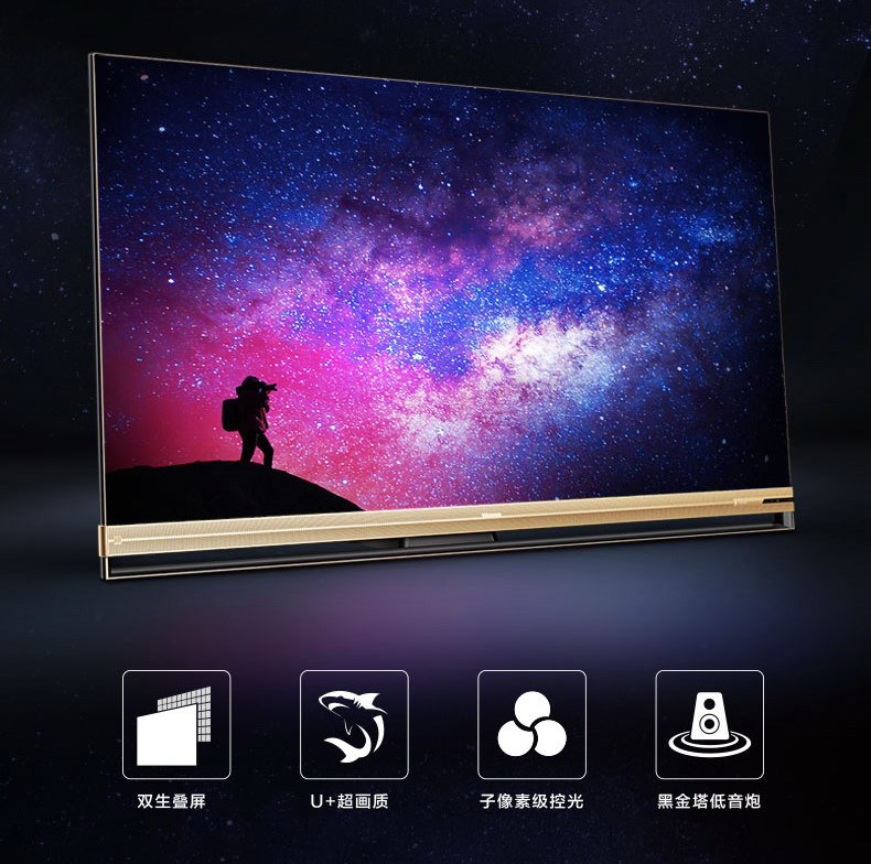 疊屏電視首創(chuàng)疊屏顯示技術(shù),采用了上下兩塊面板的疊屏顯示方案,上層彩色屏專注色彩精控,忠實還原色彩,下層黑白屏專注精細調(diào)光,呈現(xiàn)高對比度和暗場細節(jié)。