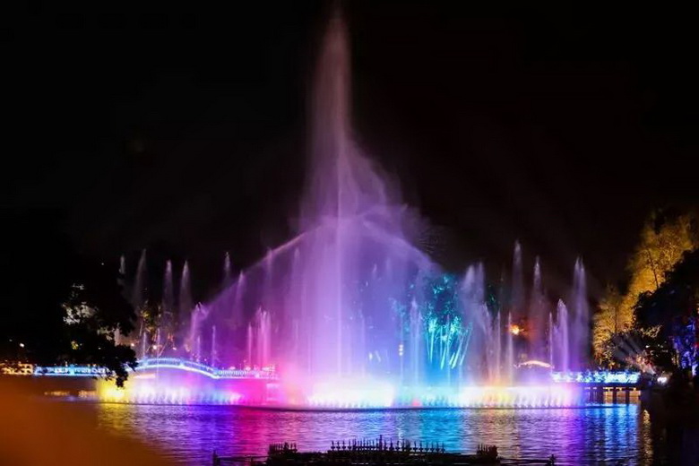 玉湖燈光秀周?chē)纳襟w、湖岸、園林、橋梁、亭臺(tái)樓閣,也按最佳觀賞點(diǎn)來(lái)確定亮度的層次劃分,對(duì)公園、廣場(chǎng)、周邊建筑、橋梁、湖岸、雕塑等進(jìn)行了全要素的亮化提升,給予市民一個(gè)全新的夜景體驗(yàn)。