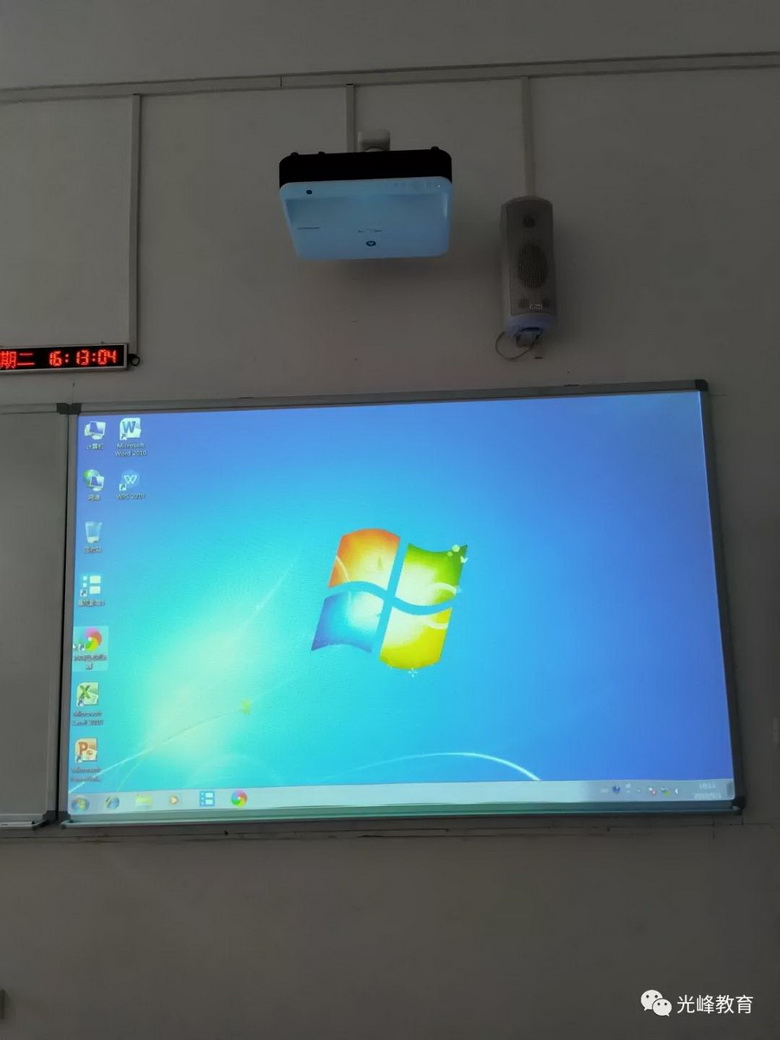 在華中交通大學(xué)小型教室中,采用了光峰超短焦激光投影機(jī)+電子白板搭配上下推拉白板。超短焦顯示,短距離投出百吋大畫面,投影光線不會(huì)照射到老師眼睛,保護(hù)視力。且不改變老師上課用水性筆書寫的習(xí)慣,代替?zhèn)鹘y(tǒng)投影機(jī)+幕布,實(shí)現(xiàn)互動(dòng)智慧教學(xué)。