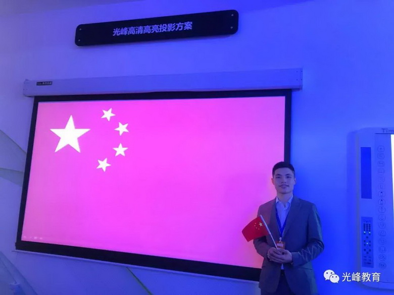 在南昌大學(xué)一個(gè)可容納200人的階梯教室中,講臺(tái)左右兩邊同時(shí)展示了光峰經(jīng)典投影機(jī)+幕布方案。授課PPT由光峰激光高亮投影機(jī)投影在幕布上,投影畫面明亮、清晰。站在最后一排,依然看的很清楚。兩邊同時(shí)顯示,保障了最左和最后的學(xué)生也能看見(jiàn)。