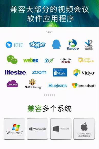 兼容性強,可兼容釘釘、CISCO、Skype、QQ、ZOOM、威速科技等多種視頻會議軟件。