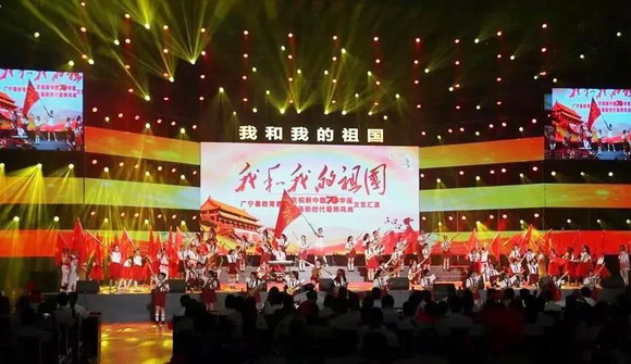 這場別具特色的文藝匯演,由師生共同演出歌舞、朗誦、武術、器樂演奏等多種形式的節(jié)目。節(jié)目精彩紛呈,主題鮮明,充分展示出豐碩教育成果,贏得了現場觀眾陣陣掌聲。晚會最后, 觀看演出的領導嘉賓現場觀眾等2000多人一起揮動手中的紅旗,共同高唱《我和我的祖國》,將文藝匯演推上高潮。