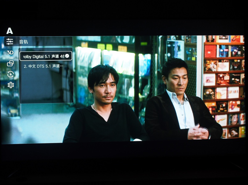 播放操控菜單,選擇字幕,音軌等調(diào)節(jié)都比較方便,其實相對于藍光機我個人覺得最方便的就是拖動,前進后退直接用遙控器前后拖動就可以了,而藍光機則只能調(diào)出播放時間菜單進行跳轉(zhuǎn)。