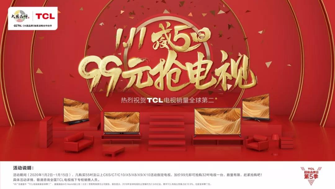 從2017年以來,TCL通過舉辦品牌日來讓利促銷,僅2017年1·13品牌日,線上線下單日銷售即超過33萬臺;2020年TCL品牌日第五季“1·11威5日”,活動時間跨度更長,更有“99元搶電視”等超值活動!在春節(jié)即將到來之際,快快選購一款,與家人享受品質(zhì)加倍的守歲之夜吧!