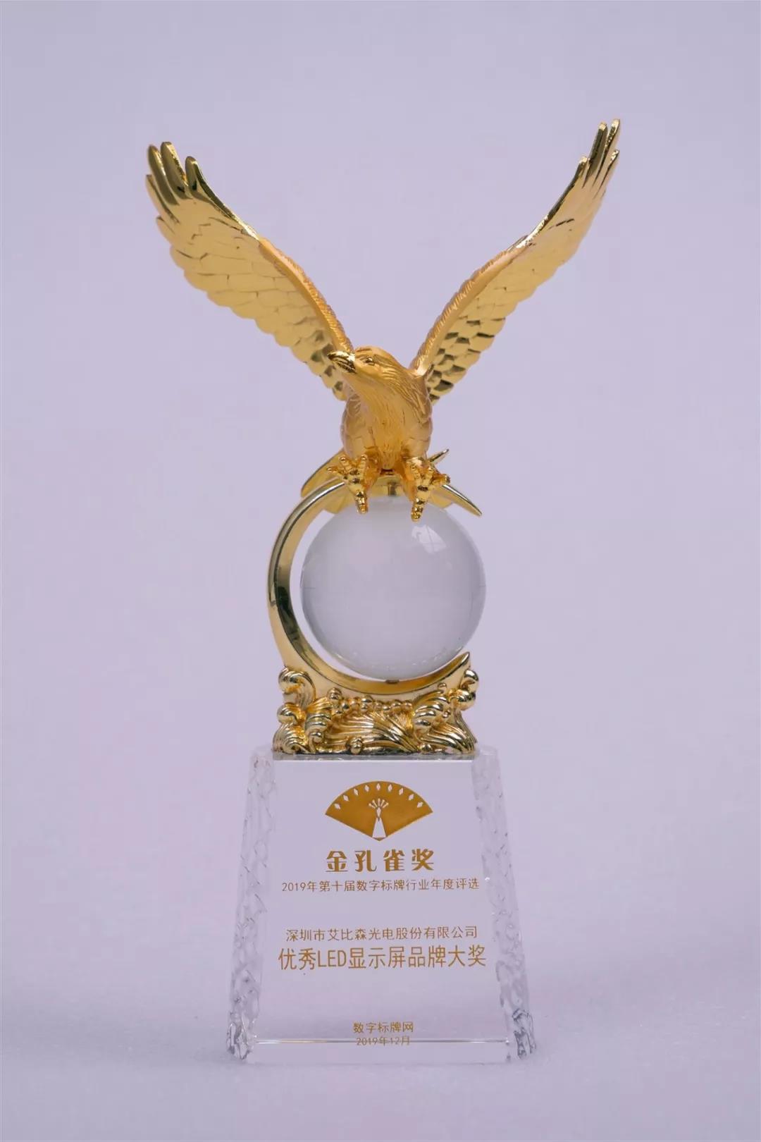 在2019年第十屆數(shù)字標(biāo)牌行業(yè)金孔雀頒獎典禮上,艾比森獲得了“優(yōu)秀LED顯示屏品牌大獎”。