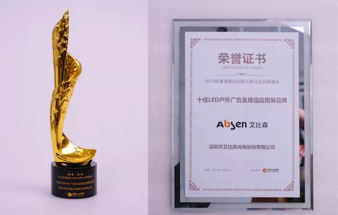 2019年的慧聰LED顯示屏行業(yè)品牌盛會上,艾比森更是雙喜臨門,同時蟬聯(lián)了2019年年度“十佳LED戶外廣告及場館應(yīng)用屏品牌”及“十佳LED顯示屏行業(yè)知名品牌”兩項大獎。
