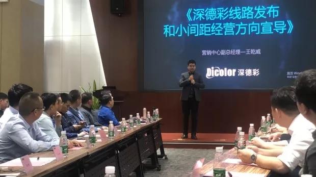 深德彩營銷中心副總經(jīng)理王乾威先生、研發(fā)中心副總經(jīng)理吳明金先生及小間距事業(yè)部總經(jīng)理李成先生先后從戰(zhàn)略部署、技術(shù)產(chǎn)品、顯示市場及渠道策略進(jìn)行分享。