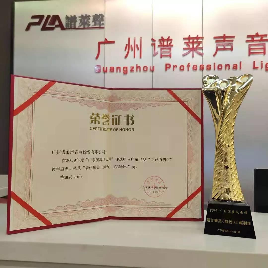 在眾多參評(píng)單位的激烈角逐中,PLA譜萊聲脫穎而出,榮獲“最佳舞美(舞臺(tái))工程制作”,“廣東省演出行業(yè)誠(chéng)信經(jīng)營(yíng)單位”。