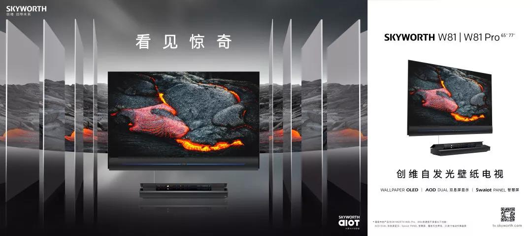 創(chuàng)維自發(fā)光壁紙電視W81、W81 Pro: 極致體驗 看見“驚奇” 創(chuàng)維是國內(nèi)首家具備OLED模組自制(OBM)能力與資質(zhì)的電視廠家,而W81系列電視正是創(chuàng)維首款OBM自制OLED產(chǎn)品,也是一款面向前衛(wèi)先鋒人群,讓用戶感到“驚奇”的尖端機型。
