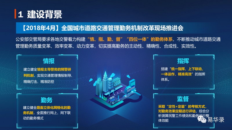 未來(lái),情指勤督一體化平臺(tái)將進(jìn)一步挖掘交通大數(shù)據(jù)的價(jià)值,為現(xiàn)有業(yè)務(wù)提供深度智能的支撐和增值服務(wù)。深化公眾服務(wù)效能,持續(xù)改革,讓市民從智能交通建設(shè)中受益。在情報(bào)方面,實(shí)現(xiàn)事件的主動(dòng)感知,結(jié)合擁堵、流量數(shù)據(jù)實(shí)現(xiàn)事故和擁堵警情的發(fā)現(xiàn)和交叉驗(yàn)證;在指調(diào)方面,歷史事故特征提取及訓(xùn)練,涉事對(duì)象、級(jí)別、趨勢(shì)、高發(fā)地等形成警情畫(huà)像,基于警情畫(huà)像與警員畫(huà)像,智能分析推薦派警方案;在勤務(wù)方面,基于歷史排班及情報(bào)數(shù)據(jù)分析評(píng)估執(zhí)勤效率及匹配度,勤務(wù)評(píng)估優(yōu)化結(jié)果作為成果反饋給智能化排班模塊;在督導(dǎo)督察方面,支持進(jìn)一步豐富考核模型的種類、對(duì)象,使考核模型與結(jié)果更加科學(xué)化、實(shí)用化。考核指標(biāo)全面量化,考核結(jié)果更加客觀、更加貼近實(shí)戰(zhàn)。易華錄將持續(xù)深化公眾服務(wù)效能,讓市民從智能交通建設(shè)中受益,助力城市智能交通的建設(shè)與發(fā)展。