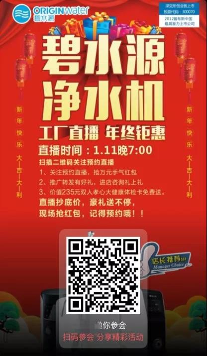 這一次,碧水源與微吼合作,將直播間搬到產(chǎn)品體驗(yàn)區(qū)?蛻暨M(jìn)入直播間,開屏海報(bào)映入眼簾,碧水源公眾號(hào)二維碼隨即彈出,歡迎模式不僅充滿人性化還進(jìn)一步擴(kuò)充自身私域流量池。