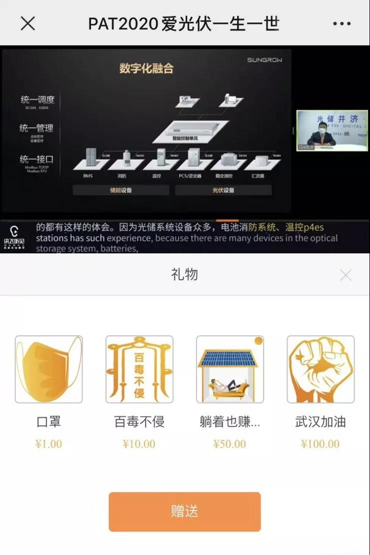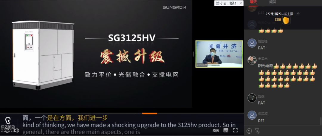 本屆PAT2020,陽(yáng)光電源與微吼合作,開創(chuàng)了中國(guó)光伏技術(shù)研討暨新品發(fā)布“純線上會(huì)議”形式,兩小時(shí)在線觀看人次超過(guò)140萬(wàn),評(píng)論互動(dòng)數(shù)萬(wàn)條。由此,陽(yáng)光電源的這次直播也被網(wǎng)友稱之為光伏界“李佳琦”的誕生。