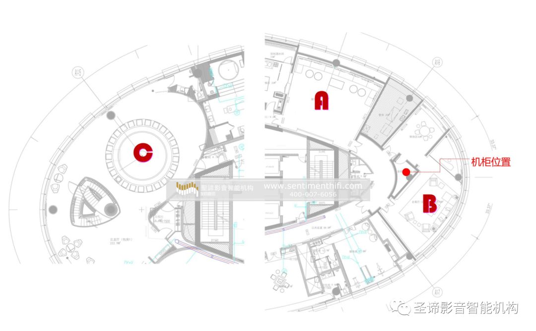 因此綜合多方因素考慮,圣諦對這兩個區(qū)域采用可移動的卡拉OK揚聲器系統設計,并通過墻面接口面板達成實現B/C區(qū)域通用的要求。