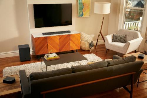 JBL BAR9.1 TWS憑借820W的峰值輸出功率,讓聲音表現更加強勁、澎湃,同時配備10”無線低音揚聲器帶來精準且有力量感的音效;JBL BAR9.1 TWS包含Wi-Fi連接且兼容AirPlay2及Qplay播放,同時也可以通過手機及平板的藍牙功能實現無線音樂串流,隨時連接享受音樂時光。