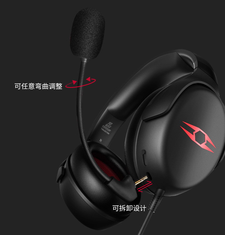 覺RISE采用可拆卸式的高靈敏降噪麥克風,方便摘取且拾音清晰自然,對話流暢,能保證游戲中與隊友的高效溝通,可彎曲的麥稈能任意調(diào)整,到玩家認為合適的角度。