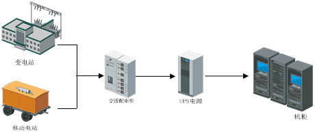 供電系統(tǒng)包括市電、油機(jī)供電、UPS應(yīng)急供電三部分,三位一體,相互支持。系統(tǒng)首用市電,市電中斷時,UPS供電系統(tǒng)確保系統(tǒng)持續(xù)供電2小時。油機(jī)啟動后,由UPS供電切換至油機(jī)供電。