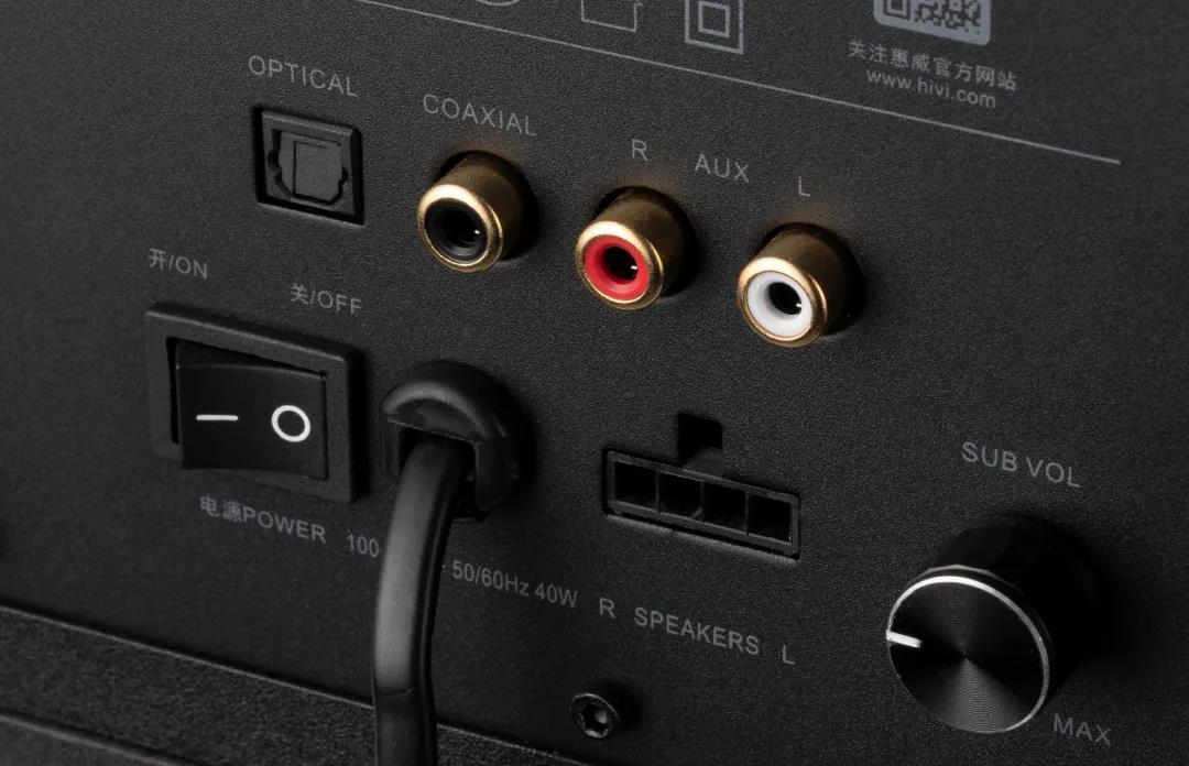 超低音的背面還配有低頻音量調(diào)節(jié),用戶可根據(jù)個(gè)人喜好調(diào)節(jié)低頻音量,打造個(gè)性化聽音。此外,衛(wèi)星箱連接線升級(jí)為專用喇叭線材,并采用一體式端口設(shè)計(jì),連接更便捷,隨時(shí)聆聽好聲音。