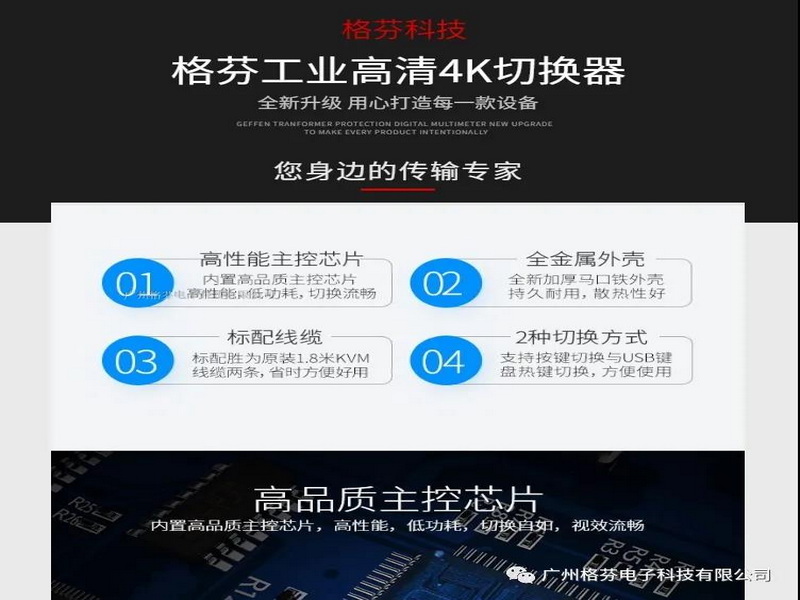 由于HDMI本身就屬于輸出數(shù)碼高畫質(zhì)影像訊號(hào)的端子,所以至少都能投放全高清等級(jí)的畫面。不過,并非所有切換器都支持4K分辨率或3D功能,如果想要觀賞這些具有極致畫質(zhì)、特殊編碼的影片或會(huì)議傳輸屏幕效果要求,購(gòu)買前請(qǐng)確認(rèn)商品的相關(guān)規(guī)格,以免達(dá)不到預(yù)期的效能。格芬科技的智能4K切換器還支持自動(dòng)適應(yīng)分辨率要求,傳輸無阻。