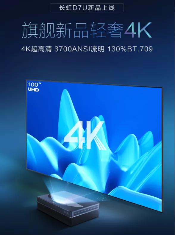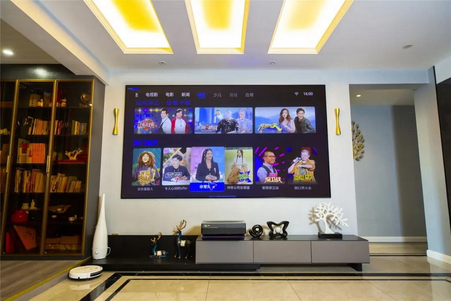 激光電視基于投影顯示技術發(fā)展而來,投影畫面可以很輕松突破尺寸限制;采用超短焦技術縮短了傳統(tǒng)投影顯示需要的投射距離,主機近墻擺放就能在抗光屏幕上投影出大尺寸畫面。以長虹激光電視D7U為例,主機后端離墻約19cm就能投射100寸的畫面,客廳無論是大還是小都能擁有。