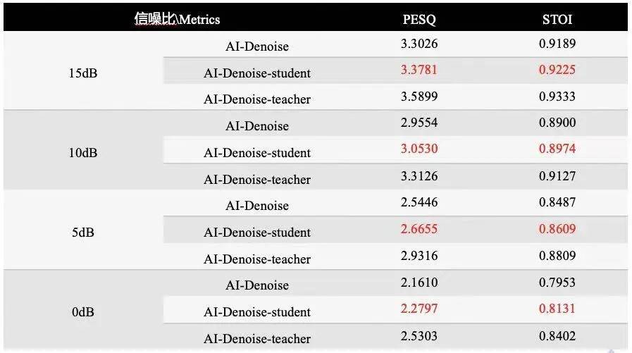 測試結(jié)果顯示,短時目標清晰度(STOI)與語音質(zhì)量的感知評估(PESQ)均有所提升,并且隨著降噪量的提升,AI降噪效果的優(yōu)勢還能進一步凸顯。