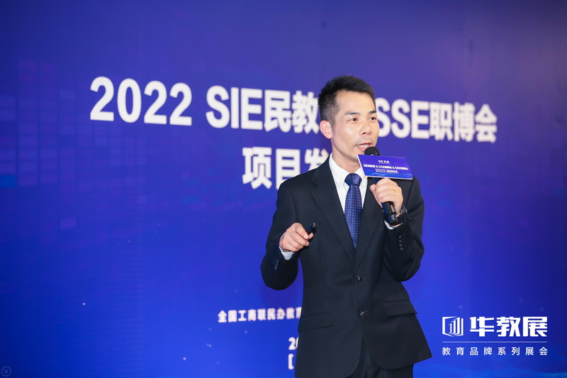 SSE職博會(huì)項(xiàng)目經(jīng)理陳小彬分別從展會(huì)意義、展會(huì)內(nèi)容及職業(yè)教育未來發(fā)展三個(gè)方面與現(xiàn)場嘉賓做分享匯報(bào)。