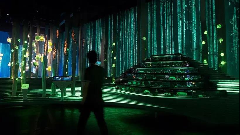 在西班牙館的底層,是一個3D沉浸式人造森林,稱為"智能森林 "。這個展區(qū)向我們展示了一個充滿希望的可持續(xù)發(fā)展未來。