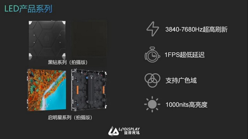 此外,藍普視訊黑鉆系列(拍攝版)與啟明星系列(拍攝版)刷新率可達3840-7680hz,能有效抑制拍攝時畫面出現(xiàn)閃動的痛點,圖像從而更穩(wěn)定;亮度達到1000nits以上,能使虛擬環(huán)境的光線照射到演員或道具上時更加逼真。