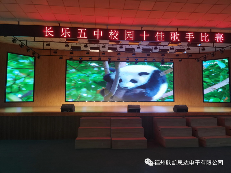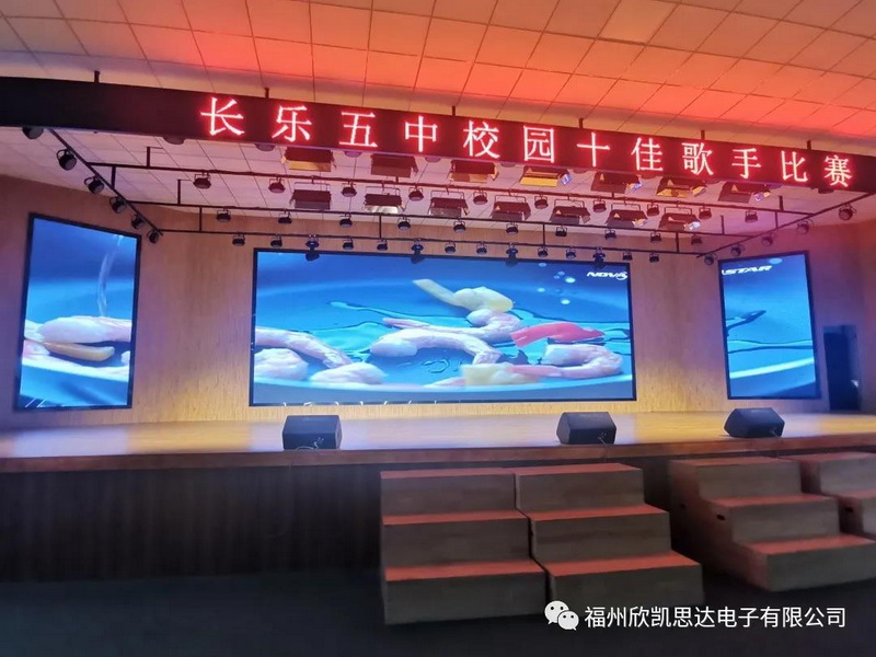 隨著校園下信息化的建設,學校的各類設備經(jīng)過多次迭代,不斷完善校園的方方面面。至今長樂五中的校園已經(jīng)是標準現(xiàn)代化并且具備自己校園特色的知名學校。這所歷史悠久的校園現(xiàn)今還在不斷的完善校園設施,提升辦學環(huán)境。今年對報告(演播)廳進行了提升改造,通過采用?低昄ED屏實現(xiàn)了現(xiàn)代化音視頻舞臺的畫面呈現(xiàn)!以下是建設后的呈現(xiàn)效果分享。