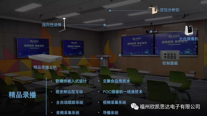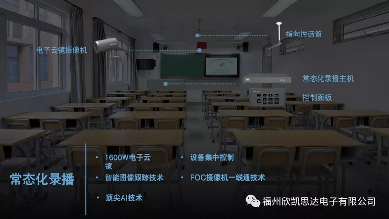 ● 常態(tài)化錄播:常態(tài)化錄播是基于學校需求以及常態(tài)化應用場景構(gòu)建所衍生的錄播產(chǎn)品品類,彌補了精品錄播建設成本高建設環(huán)境改造復雜而無法做到每間教室建設,常態(tài)化應用的短板。并且常態(tài)化錄播的建設更多的是注重課堂隨錄、互動課堂的使用場景,幫助學校實現(xiàn)多教室常態(tài)化進行互動課堂、直播課、以及課程回顧等需求。目前欣凱思達欣凱思達福州、廈門展廳均有建設樣板教室,歡迎前來參觀體驗。