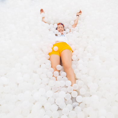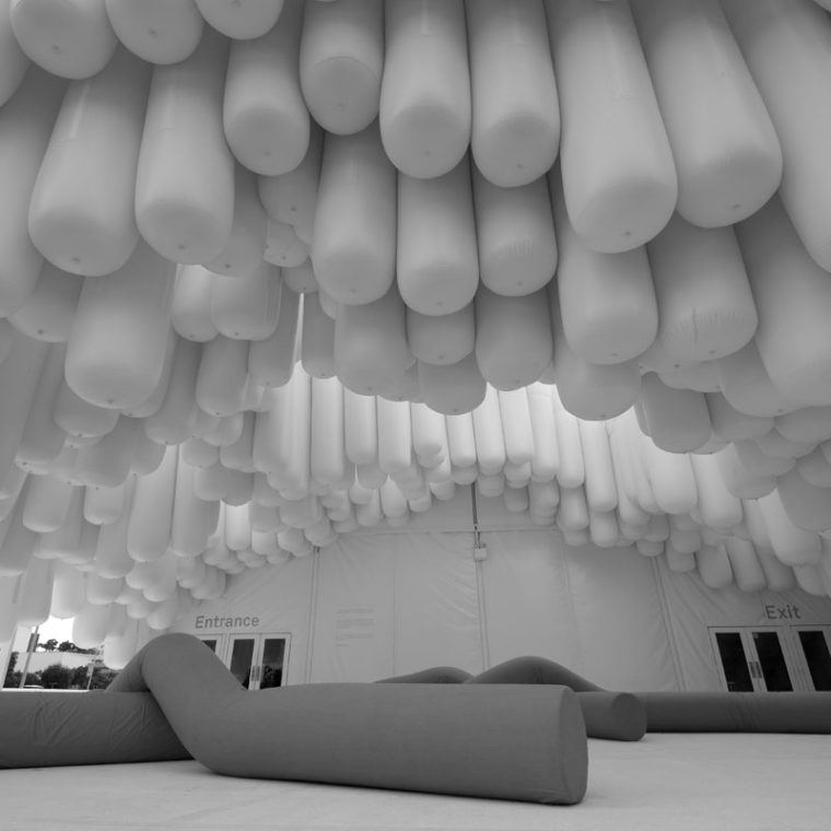 在博物館的西院,或者說 "前院",一個定制的再現(xiàn)《紀(jì)念鞠躬》(2012年),歡迎游客進(jìn)入空間。參觀者從房子里出來走向東庭,或 "后院",迎接他們的是《Playhouse》(2017年)和一個裝滿數(shù)十萬個可回收塑料球的腎形泳池,讓人想起《The BEACH》(2015-17年)。