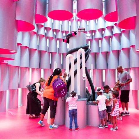 博物館與羅克韋爾集團(tuán)的LAB合作,推出2019年夏季街區(qū)派對裝置。草坪是一個沉浸式的裝置,占據(jù)了博物館禮堂的整個空間,并為全年齡段的觀眾提供互動體驗。