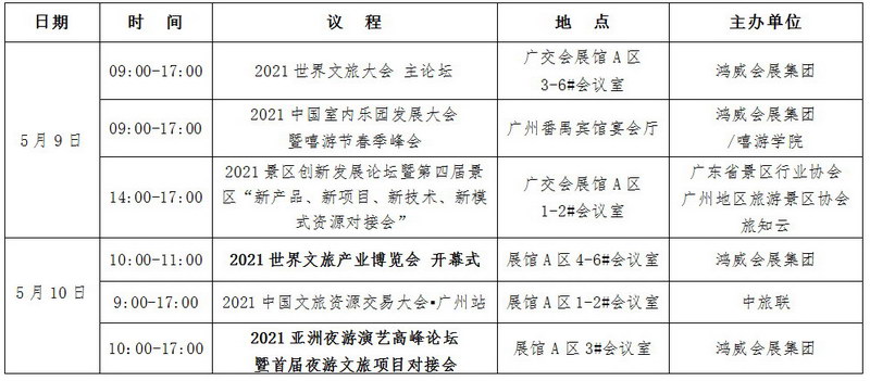 2021世界文旅大會主論壇及分論壇、同期活動安排(擬)