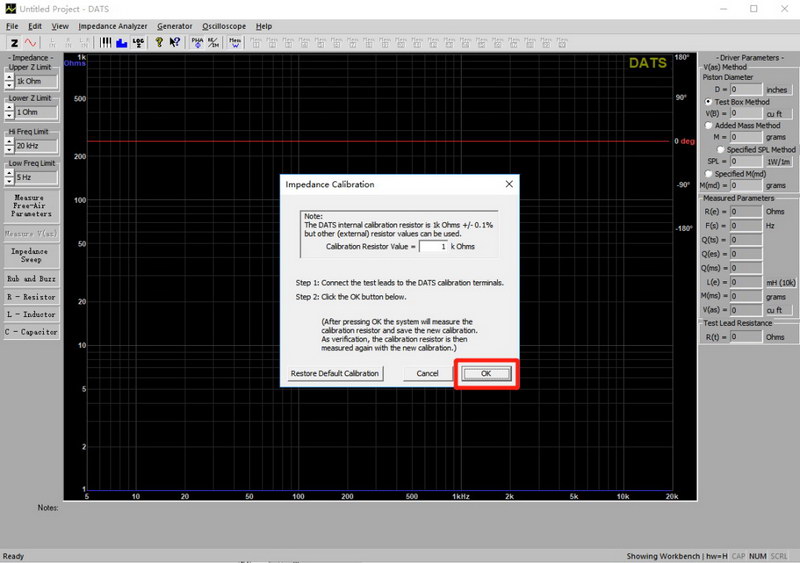 完成上述步驟后,DATS V3的校準(zhǔn)工作已完成,可以開始對電容/電感/電阻/揚(yáng)聲器/音箱等進(jìn)行相應(yīng)的測量。