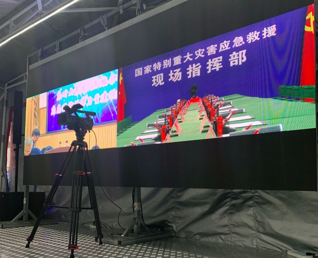 在應(yīng)急救援現(xiàn)場要實(shí)現(xiàn)信息暢聯(lián)、全面統(tǒng)籌,可視化指揮調(diào)度就顯得尤為重要。為了后方救援工作的高效快速開展,在演習(xí)現(xiàn)場的國家級指揮方艙指揮室內(nèi),采用了GQY視訊提供的快速拆裝架構(gòu)的LED屏。