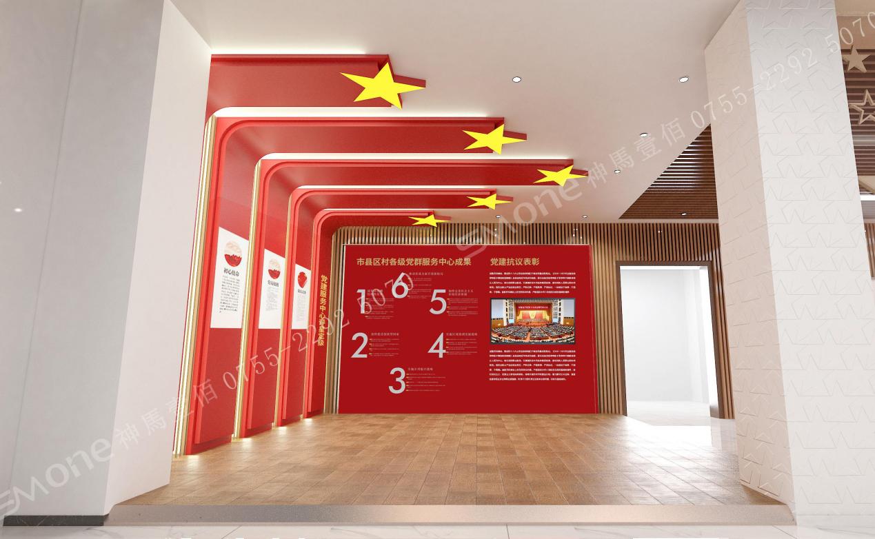 通過(guò)互動(dòng)觸摸屏和形象墻展示海陸豐革命史和基層黨建工作。