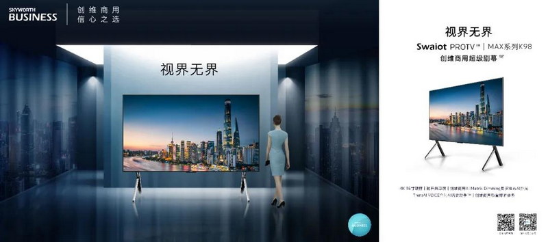 根據(jù)中國電子視像協(xié)會數(shù)據(jù)顯示,我國彩電尺寸平均每年增大1.7英寸?梢钥闯觯夹g(shù)創(chuàng)新之外,大尺寸也成為顯示行業(yè)新一輪產(chǎn)品結(jié)構(gòu)升級的關(guān)鍵所在。市面上的大尺寸電視不在少數(shù),但以商用場景為主導(dǎo)的卻并不常見。作為擁有大尺寸資源和彩電生產(chǎn)條件的廠商,創(chuàng)維商用深入洞察,推出Swaiot PROTV™|MAX系列K98以4K 98吋超清顯示搭配絕美的畫質(zhì)和智慧系統(tǒng),為商用領(lǐng)域帶來“視界無界”的極致體驗。