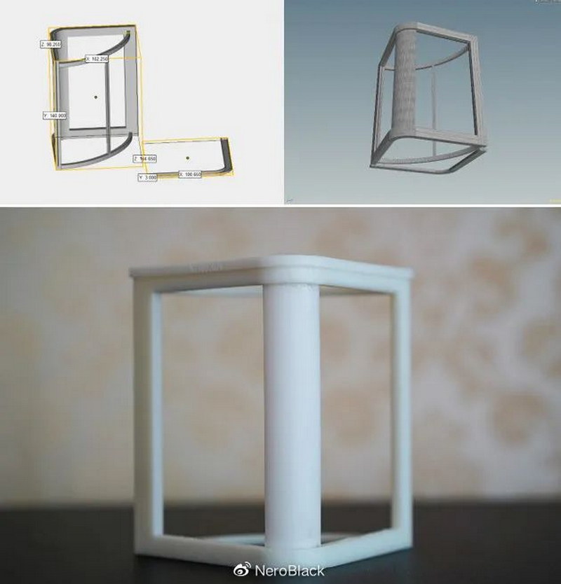 失敗。因為只考慮了尺寸和形狀,而忽略了實體受力(樹脂材料兩邊太薄導(dǎo)致過于柔軟、“頭重腳輕”,最后折斷):