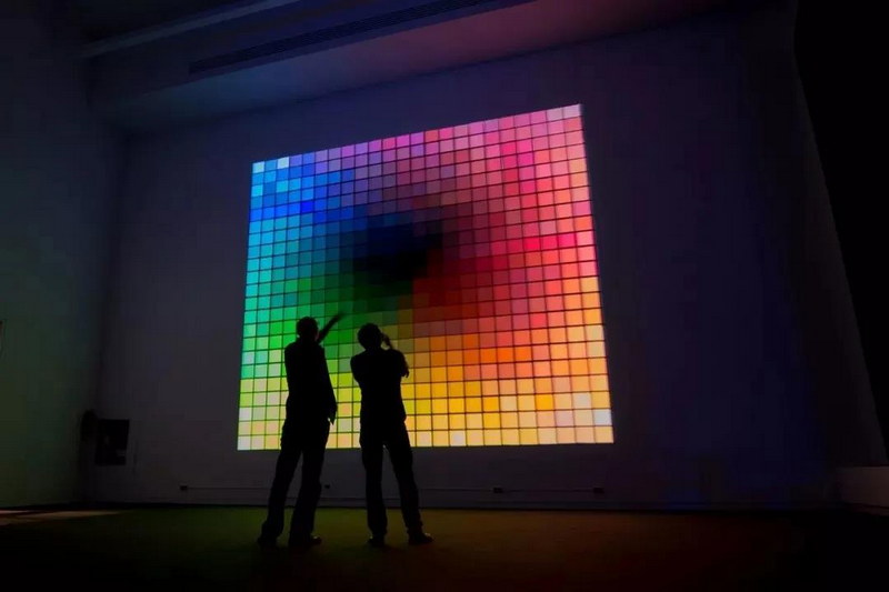這個大型數(shù)字化色彩墻,由529個方形面板組成。色彩不斷變化、移動,可形成超過3174種顏色。