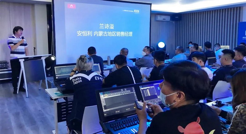 在之后的培訓中,由安恒利燈光部產(chǎn)品推廣副經(jīng)理李怡燃介紹舞臺燈具分享及演示和燈光網(wǎng)絡系統(tǒng)的搭建與擴展,技術(shù)支持經(jīng)理李晨陽進行g(shù)MA3控臺培訓。