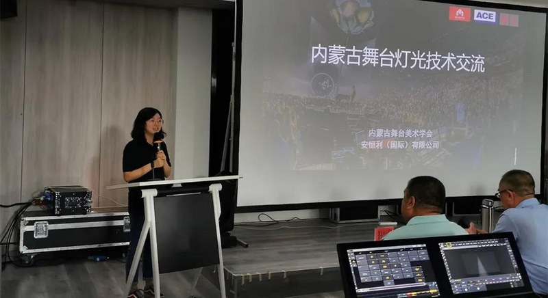 安恒利燈光部內(nèi)蒙古區(qū)域銷售經(jīng)理蘭詩溢代表安恒利公司表達對內(nèi)蒙古舞臺美術(shù)學會的支持與幫助表示感謝,對遠道而來參加培訓的老師表達感謝。
