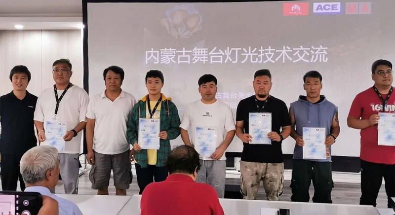 培訓結(jié)束后,由內(nèi)蒙古舞臺美術(shù)學會會長浩特,內(nèi)蒙古舞臺美術(shù)學會名譽會長解力軍、白呼和,副會長阿哲、李太平、劉鵬,與安恒利燈光部內(nèi)蒙古區(qū)域銷售經(jīng)理蘭詩溢,產(chǎn)品推廣副經(jīng)理李怡燃,技術(shù)支持經(jīng)理李晨陽,技術(shù)支持副經(jīng)理張志朋,系統(tǒng)技術(shù)工程師于志強分別為所有學員頒發(fā)培訓證書。