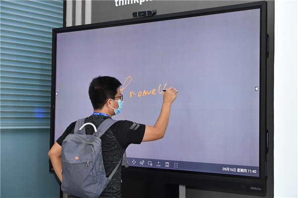 在本次ISVE上,聯(lián)想thinkplus展示了最新的聯(lián)想“智能會議協(xié)作系統(tǒng)”及聯(lián)想研究院自研的“智慧白板軟件”。配備聯(lián)想“智能會議協(xié)作系統(tǒng)”的智能會議室與以往會議室的投屏分享、溝通討論不同,用戶進入會議室打開電腦,無需繁雜冗余的接線,即可自動鏈接聯(lián)想thinkplus大智慧屏,用戶可以主動連接到以大智慧屏為核心的“設備網(wǎng)絡”中,而會議主持人則可以實時對“設備網(wǎng)絡”中的設備進行管理、授權及攝像頭、麥克風、屏幕分享等功能的調(diào)用,實時掌控會議全局,真正做到“無界協(xié)同”。而“智慧白板軟件”則是從商務客戶的“書寫體驗、操控交互、會議提效”三大細分應用場景入手,以更為人性化的交互設計,全面優(yōu)化用戶使用效率與體驗。通過手勢操控、在白板界面下模塊化插入、大屏反控電腦等功能,讓書畫同步“更加高效”;與此同時,功能欄與懸浮模塊智能跟隨,也讓大屏使用“更人性化”。
