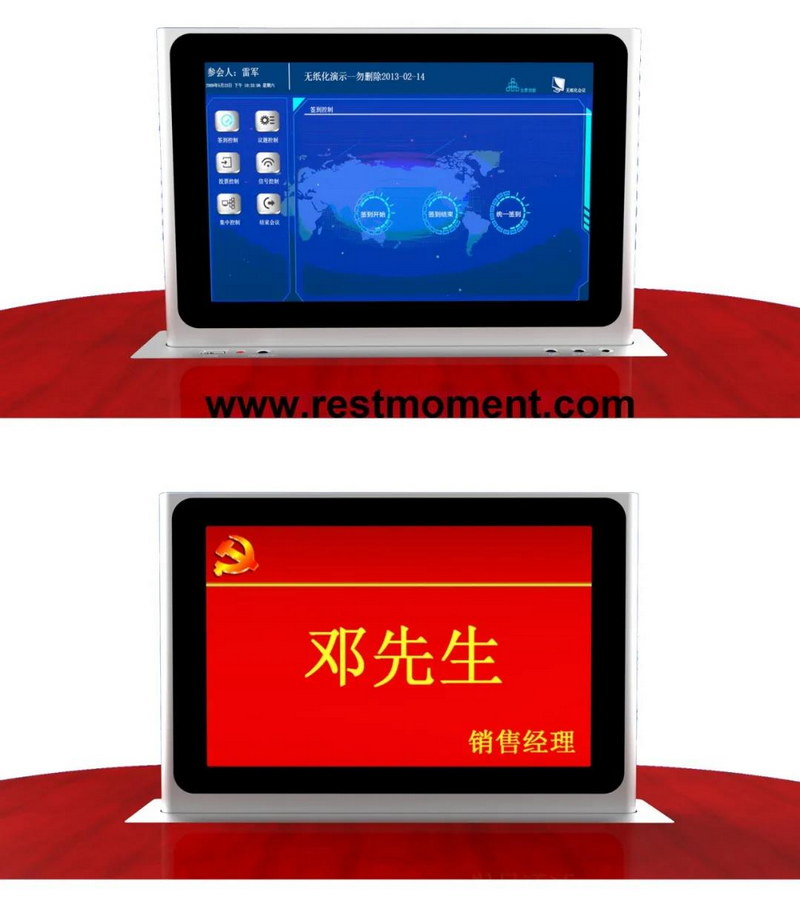 升降器和屏一體呈現(xiàn),保證運(yùn)輸,維護(hù)安全便捷,也可獨(dú)立升級(jí);多功能融合接口,一個(gè)接口解決供電,觸控,視頻所有信號(hào);全鋁合金外殼,整體CNC設(shè)計(jì),屏幕最厚18MM;屏幕雙面10.1英寸,物理分辨率1280*800,IPS全視角顯示屏;采用四核Cortex-A9核心28nm工藝1.4G主頻,內(nèi)存 8GbitRAM,硬盤64Gbit EMMC;雙重組網(wǎng),既支持wifi組網(wǎng)也支持RJ45網(wǎng)線組網(wǎng);雙屏可同步顯示參會(huì)人信息,支持呼叫服務(wù)、會(huì)議交流、會(huì)議信息、會(huì)議通知、投票表決等等功能。