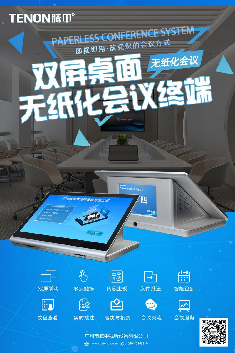 騰中TENON無(wú)紙化會(huì)議系統(tǒng)是行業(yè)領(lǐng)先的、專(zhuān)門(mén)為解決現(xiàn)代會(huì)議中的實(shí)際問(wèn)題而提出的一體化解決方案,適合于各種高端會(huì)議場(chǎng)合,以及重要的政務(wù)、商務(wù)、企事業(yè)單位和大型活動(dòng)的會(huì)場(chǎng)實(shí)施應(yīng)用。