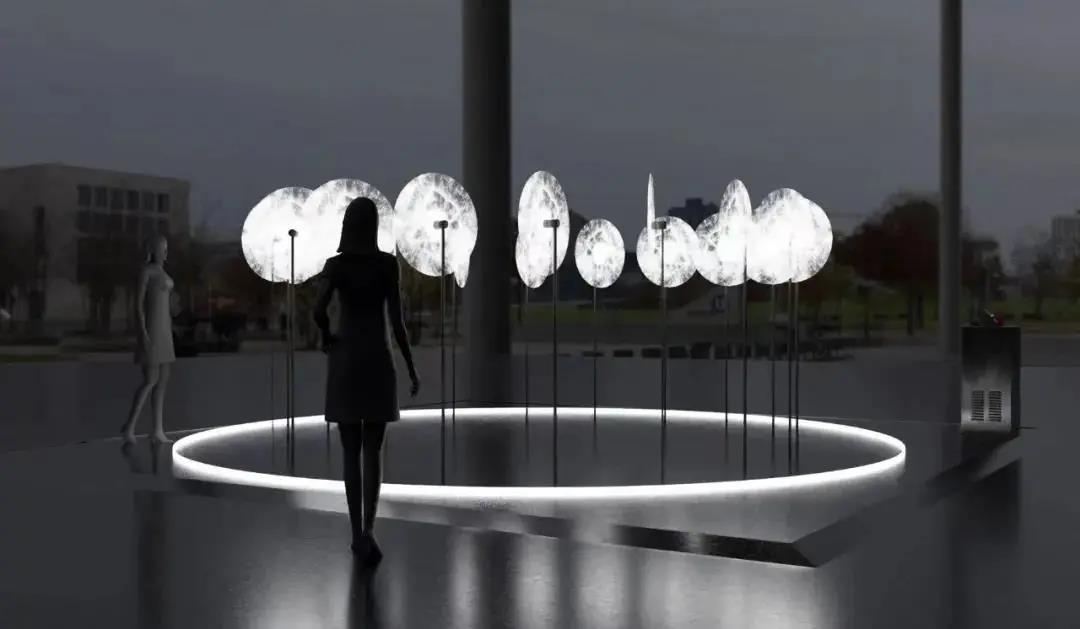 TeamLab 最近創(chuàng)作了一組卵形燈光雕塑,借此嘗試顏色的新可能, 61種顏色的卵形隨著周?chē)h(huán)境的改變而改變,在陽(yáng)光下,卵形反射周?chē)氖澜。?dāng)被人推動(dòng)或被風(fēng)吹倒時(shí),它會(huì)產(chǎn)生回響并自行站立。周?chē)穆研我惨灰粦?yīng)聲,回蕩著同樣的聲音。